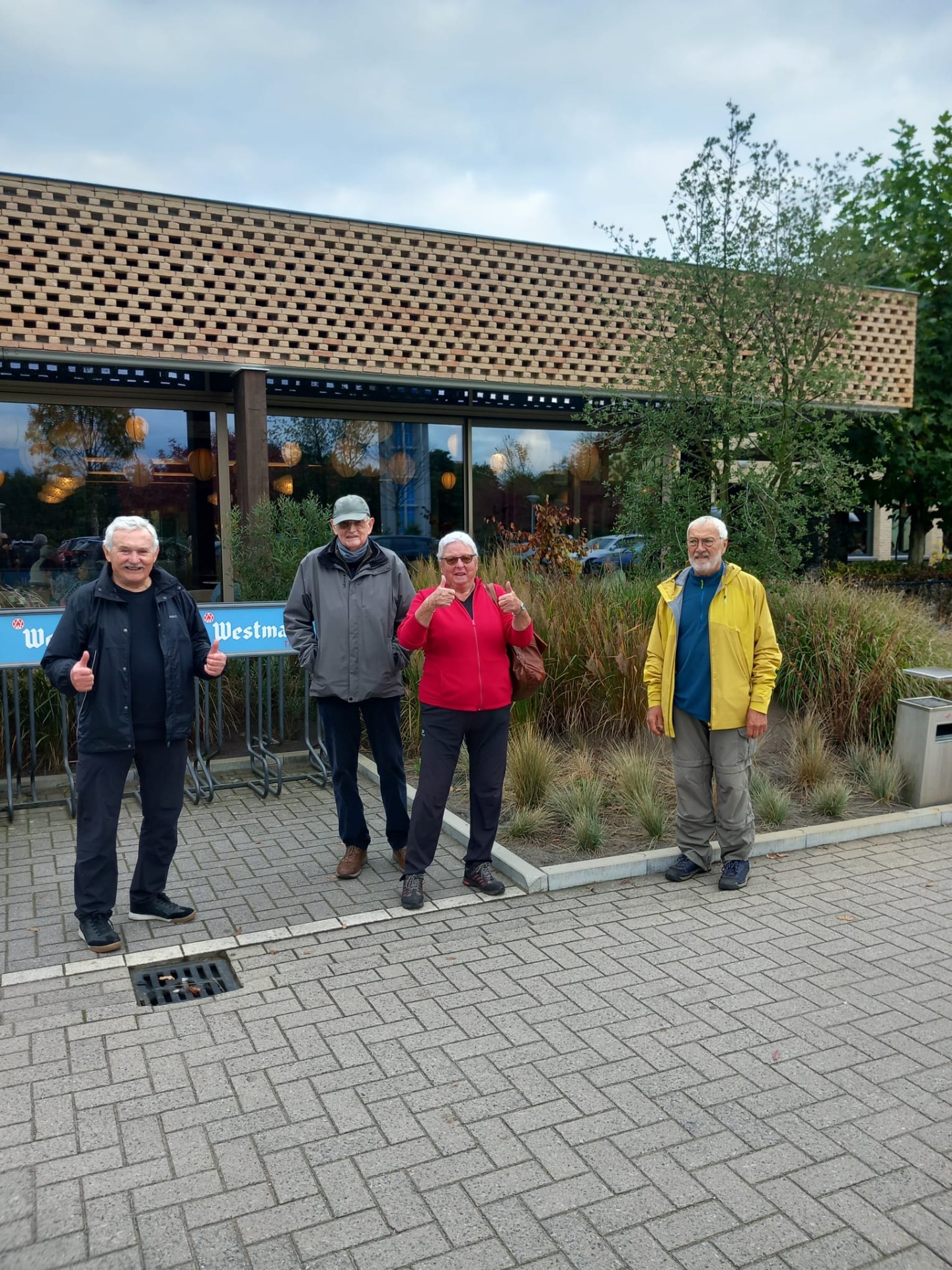 Eind goed – al goed. Stipt om 11 uur was iedereen op het appel. Naar goede gewoonte nog eerst een koffietje gedronken. Eens buiten gekomen was de regen verdwenen voor de hele dag.